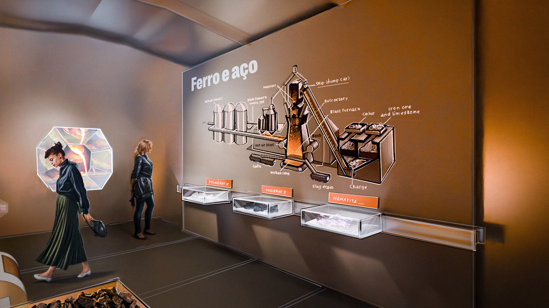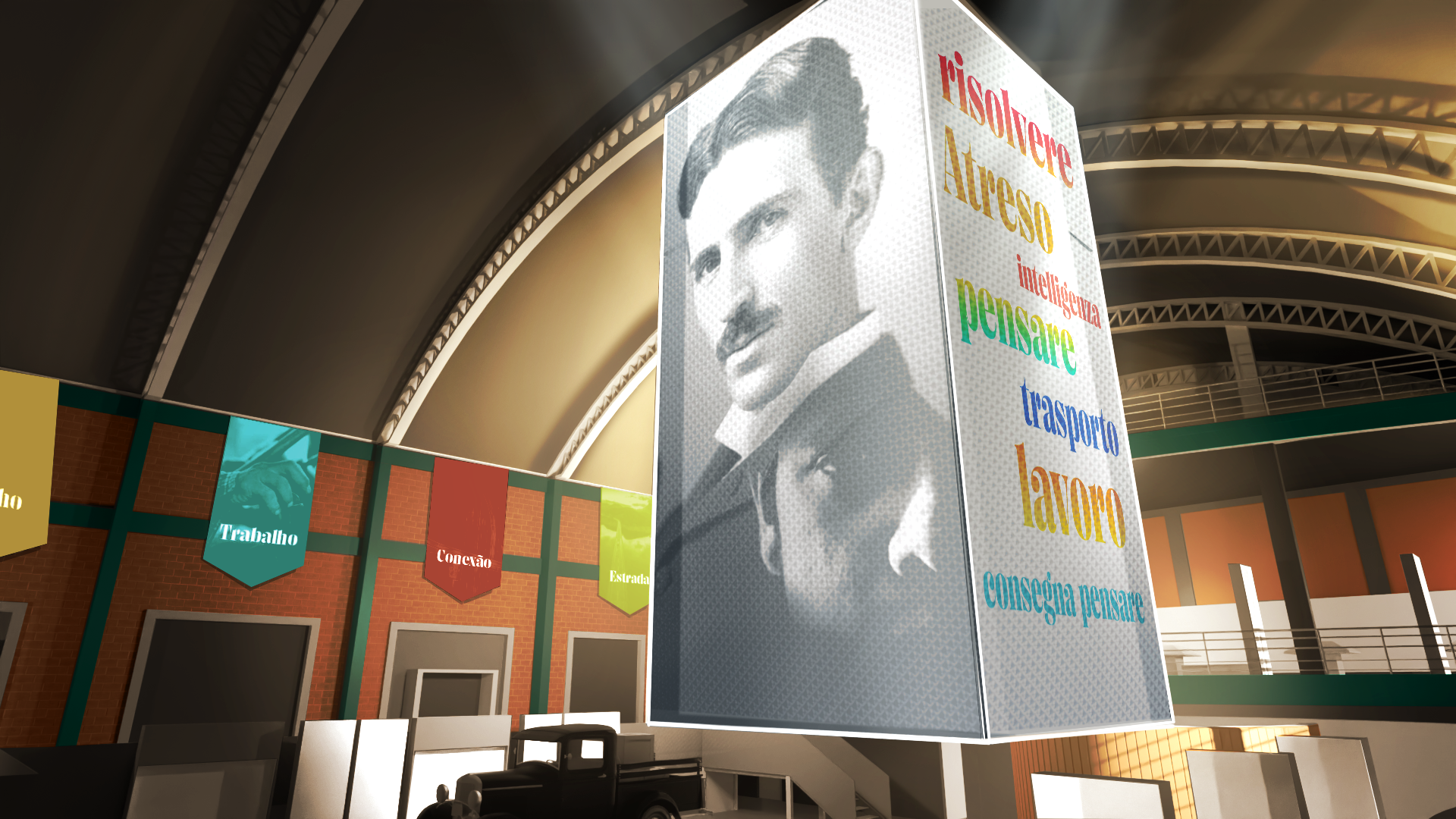 The Freight Exhibition Center was conceived as a unique project, aiming to comprehensively depict the evolution of cargo transport in Brazil. An interactive space with experiences to celebrate Randon's legacy throughout the years. Creating designs that reflect the craft of transportation was a joy, and getting to know more about this huge world of industrial elements and machines.